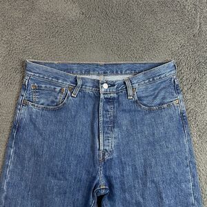 Levis Jeans Mens 34x34 Blue 501 Straight Fit Medium Wash Denim Button Fly Casual