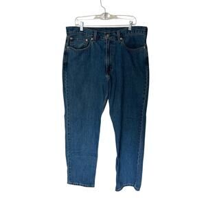 The product is a pair of men's Levi's jeans in size 36x32. These classic blue jeans feature a regular fit with a straight leg style and a mid-rise waist. The jeans are designed for a comfortable and timeless look, perfect for everyday wear. The Levi's brand is known for its quality and durability, making these jeans a reliable choice for any man's wardrobe.