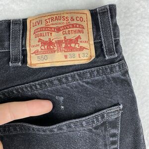 Levis Jeans Mens 38x32 (fit 36x29.5) Black 550 Relaxed Fit Loose Tapered Denim.