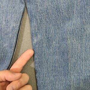 Wear on leg hems, light spots on front and back of jeans as shown in photos.