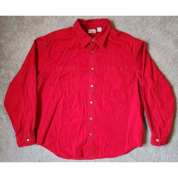 Levi's Jeans Red Denim Long Sleeve Metal Button Up Shirt Size XL Y2K 100% Cotton.