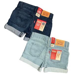 Levi's Jeans Shorts Girls Cuffed Stretch Blue & Light Blue 2 Pairs Size 12 NWT
