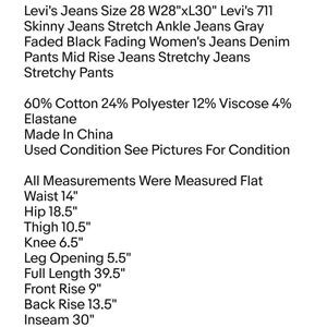 Levi's Jeans Size 28 W28"xL30" Levi's 711 Skinny Jeans Stretch Ankle Jeans Gray Faded Black Fading Women's Jeans Denim Pants Mid Rise Jeans Stretchy Jeans Stretchy Pants