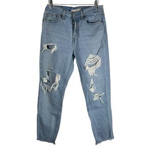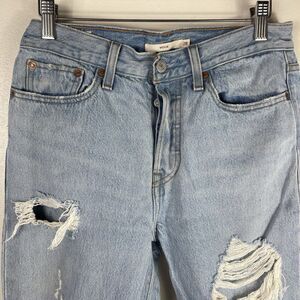 Levis Jeans Wedgie Straight Womens 28 Button Fly Distressed Light Wash Denim
