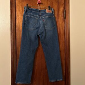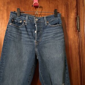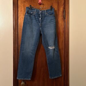 Levi's Jeans Wedgie Straight Women’s 29 Distressed Dark Blue Denim Button Fly