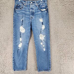 Levis Jeans Womens 30 501 Blue Stretch Mid Rise Button Fly Classic Straight *GUC