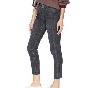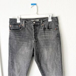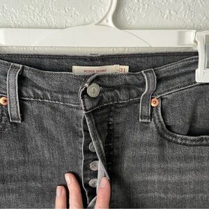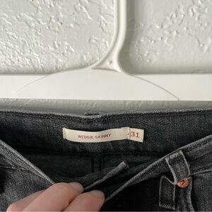 Levi's Jeans Women's 31 Wedgie Skinny Black Gray Raven's Wing Button Fly Raw Hem
