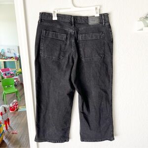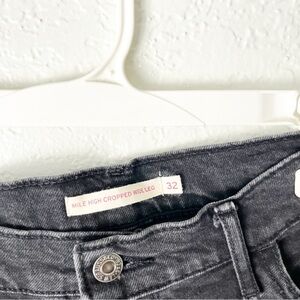 DETAILS: Levi's jeans women's 32, black mile high wide leg style, cropped, button fly. Cotton spandex, machine wash.