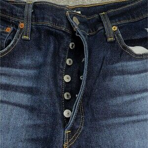 Levis Jeans Womens 32X27 Ribcage Straight Ankle Button Fly Dark Wash Stretch. Distressed. 13" High Rise.