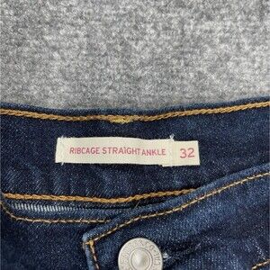 Levis Jeans Womens 32X27 Ribcage Straight Ankle Button Fly Dark Wash Stretch