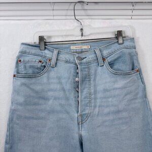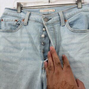 Levis Jeans Womens 32x33 Blue Light Wash Ribcage Boot Stretch High Rise