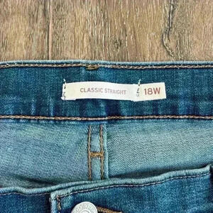Levi’s Jeans. Women’s size 18W. Classic Straight style. Inseam measures approximately 28.5”. Rise measures approximately 10”. Waist measures approximately 19” when lying flat. Great condition- like new! Great stretch and very comfortable!