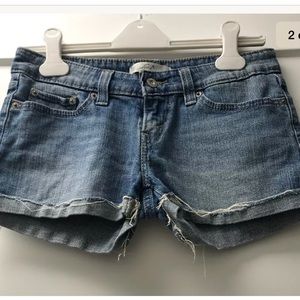 Juniors cuffed distressed jean shorts in a medium wash. Shorts have slight stretch. Shorts are great paired with a blouse or blazer and heels for a trendy/chic look. Shorts are great for everyday casual summer wear. Shorts are in great used condition.