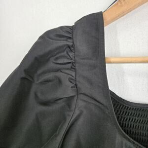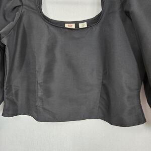 Levi's Kaila Puff Sleeve Crop Satin Top 1X Black Smock Back Whimsygoth Boho
