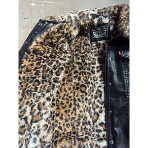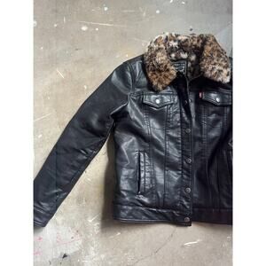Levi’s Leather jacket, Black Faux Fur Collar, Animal Print