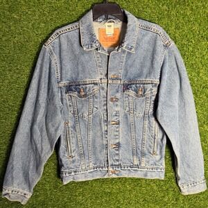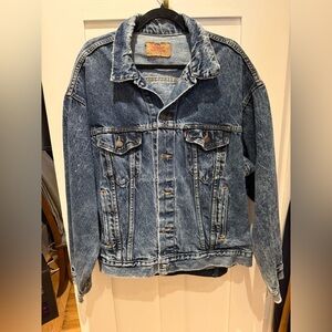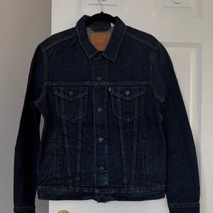 Stylish Levi's denim jacket. Lightweight and perfect for layering. Features button closure and chest pockets.