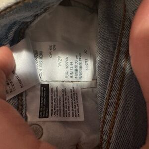 Stylish Levi's jean shorts with a frayed hem. Light blue denim with distressed details. Perfect for casual wear.