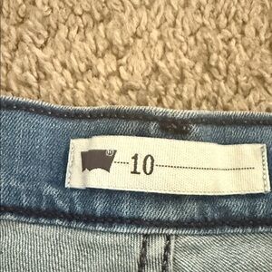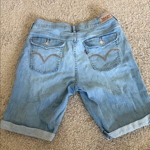 Chic Levi's jean shorts in light blue. Perfect for casual wear. Comfortable and stylish.