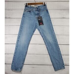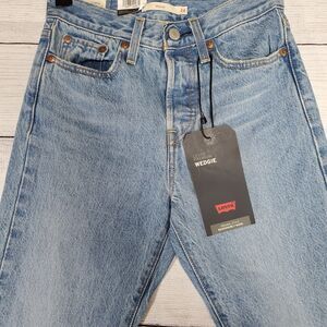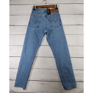 Classic Levi's straight leg jeans. Light blue denim. Timeless style.