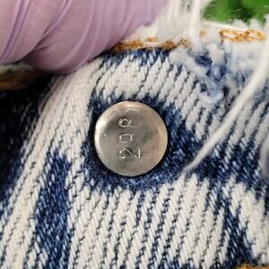 Classic Levi's jeans. Light blue denim. Straight leg design. Frayed hem for a casual look. EUC