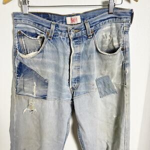 Levi's Light Wash 501 Button Fly Patchwork Straight Leg Jeans sz 34