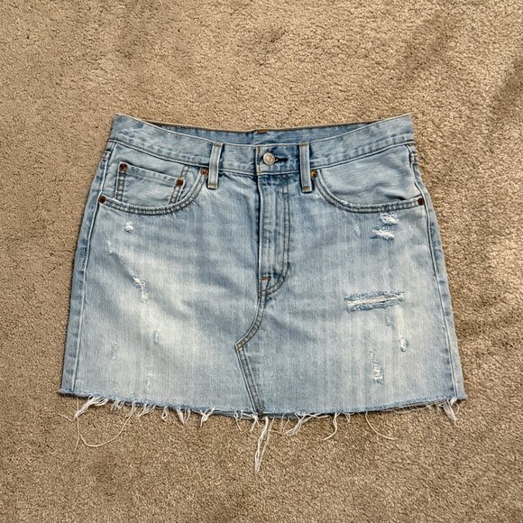 Levi’s Light Wash Distressed Denim Mini Skirt – Size 30