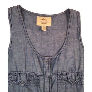 Levi's Linen Blend Blouse Women's Blue Denim Wash Button Sleeveless Tank XS Vest