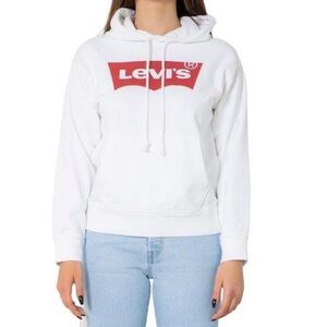 Levi’s Logo Print White Pullover Hoodie Women’s Size XS