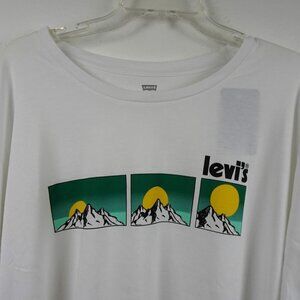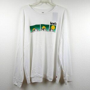 Levi's Logo T-Shirt Men's Size 2XL White Long Sleeve Cotton Mountain Theme