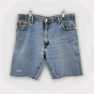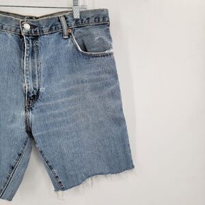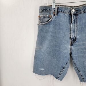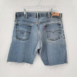 Levi's Vintage Unisex 34 90s Blue Boho Distressed Raw Hem Cutoff Long Shorts