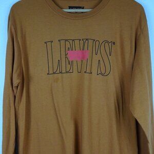 Levi's Long Sleeve T-Shirt Men's Size M Brown Spell Out Logo Flawed Read Descr
