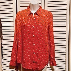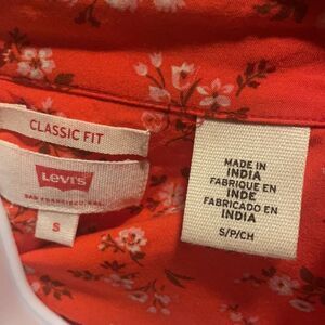 Size small Levi’s floral print button down blouse. Condition is like new. Red/orange color with little white flowers. Very soft.