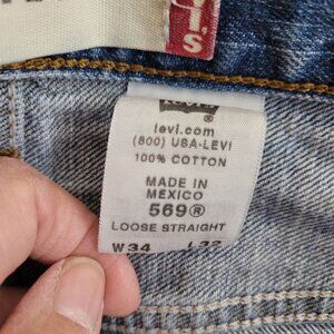 Levi's jeans, men's denim, loose straight, blue jeans, casual wear, 100% cotton, W34 L32, relaxed fit, comfortable jeans, classic style, durable denim, made in Mexico, versatile pants