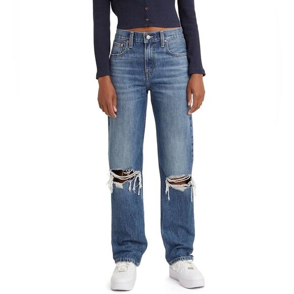 Levi’s Low Pro Straight Mid Rise Distressed Knees Dark Wash Jeans Size 26