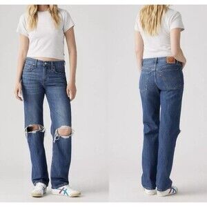 Levis Low Pro Straight Womens Distressed Blue Jeans Size 29