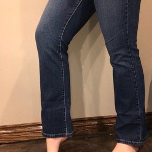 These jeans are a classic denim blue color and have two buttons at the top. Pockets on front and back are functional. I could not find the size in these but I wear a size 8, so I would assume these are a size 8 as well! No signs of wear and are in very good condition. Let me know if you have any additional questions!