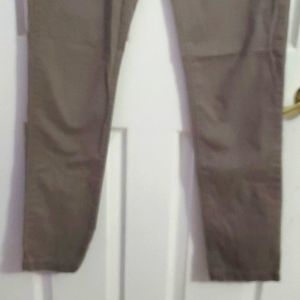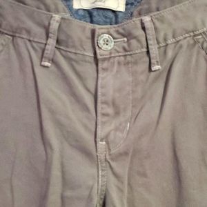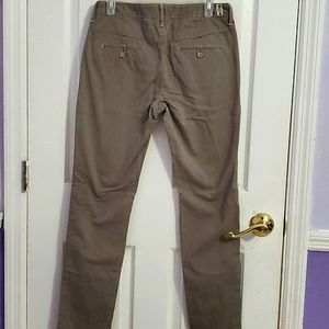 Dark taupe high rise baggy trousers. Button and zipper closure. Straight leg with fitted ankles. Two pockets on the front and two buttoned pockets on the back. 100% cotton.