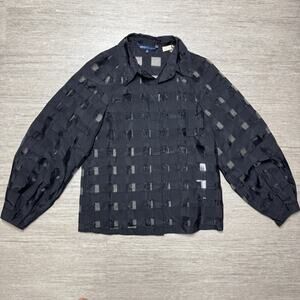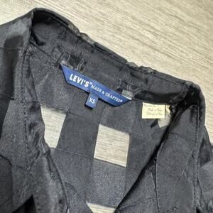 Levis Made & Crafted Grid Blouse Button Shirt Women's XS Puff Sleeves Semi Sheer