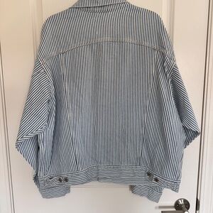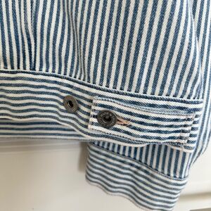 The kind of jacket that'll tie a whole look together. We took the iconic Levi’s® Type II Trucker Jacket and gave it a modern, oversized silhouette. It’s got all the features you've come to expect from this much-loved style, from the double pleating detail to the tapered “V” stitches and those Levi’s® branded metal buttons. This one features yarn-dyed vertical stripes.