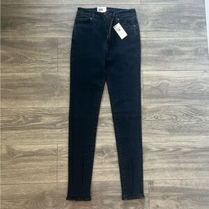 Brand new with tags, authentic pair of Levi's Made & Crafted brand blue jeans in the Silver High Skinny style that sits high at the waist and hugs your shape from hip to ankle in premium stretch denim. comes in a gorgeous dark inky blue "Black Mineral" color made of 11oz Japanese denim from Kaihara Mills, finished with a unique denim splicing technique to create a modern look complete with zippers at the leg opening.
