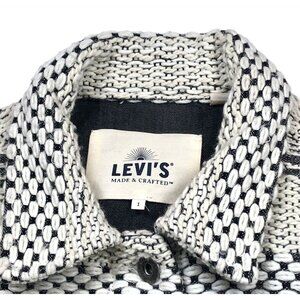 The Levi’s® Made & Crafted® Tribal Trucker is our Boxy Trucker fit constructed from a very special hand-loomed French fabric. It is a unique woven jacquard fabric with alternating size yarns for an extremely textured look. Details include fringe along the back and arms, shank buttons and flap chest pockets.Style # 393450000Color: WhiteHow it FitsNon-stretchBoxy fit