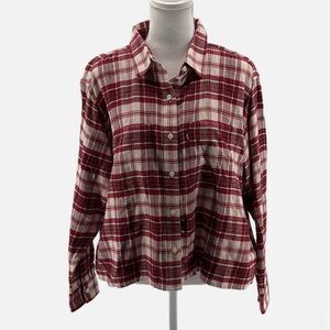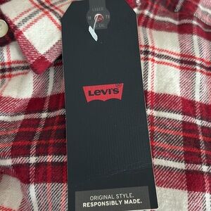 Levi's Maple Cotton Flannel Plaid Utility Shirt Red Combo - NEW - Size Medium. New with tag. Levi's Maple Utility Flannel Shirt. Brushed cotton flannel shirt with allover plaid print. Boxy, semi-crop fit. Button front closure. Collared neckline. Dual chest patch pockets. Long sleeves. 100% cotton. Machine wash.