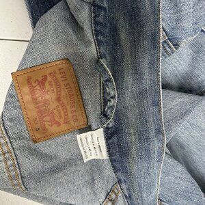 Levi’s Medium Wash Blue Denim Collated Button Up Men’s Jean Trucker Jacket S