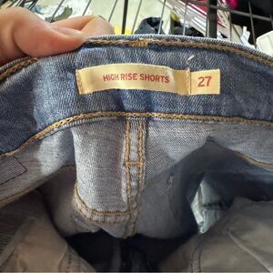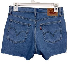 Gently worn women's size 27 Levi's medium wash High waisted jean shorts. Please review all photos for any signs of wear-pictured as is. Disclaimer: Any items with any wear/staining has not been treated, and unsure of ability to remove/treat condition. Comes from a smoke free home, bundle with other items to save & minimize shipping cost.