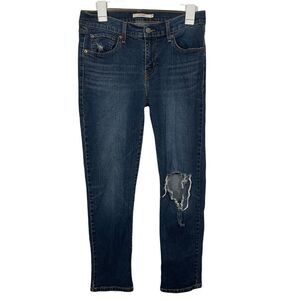 Gently worn women’s size 27 Levi’s distressed boyfriend jeans. Medium wash, mid rise, Comes from a smoke free home, bundle with other items to save & minimize shipping cost.