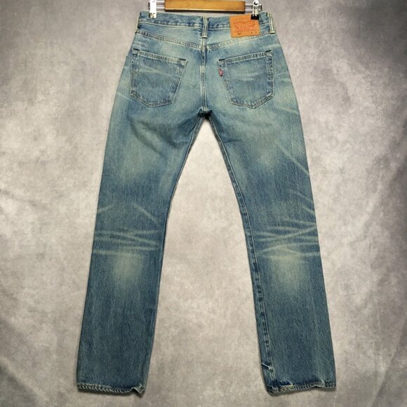Levis Men 501 Original Fit Blue Jeans size 30x32 Distressed Destroyed Light Wash