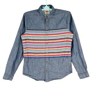Levis Men Modern Fit Button Blue Shirt Size M Long Sleeves Multicolor Stripes