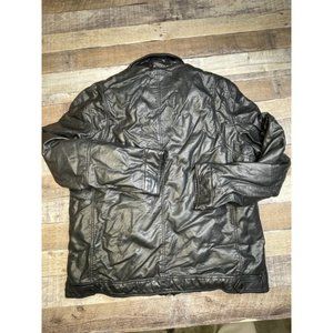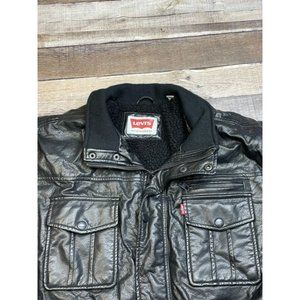 Levis Men XL Black Faux Leather Jacket Sherpa Fleece Lined Full Zip Biker Racer