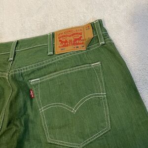 Levis Mens 501 Original Shrink to Fit Jean Green 38x34 White Stitch Button Fly