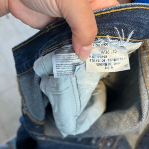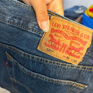 Pre owned excellent condition. Worn a handful of times. Really nice medium wash straight leg jeans with button fly. Mens size 36x30.